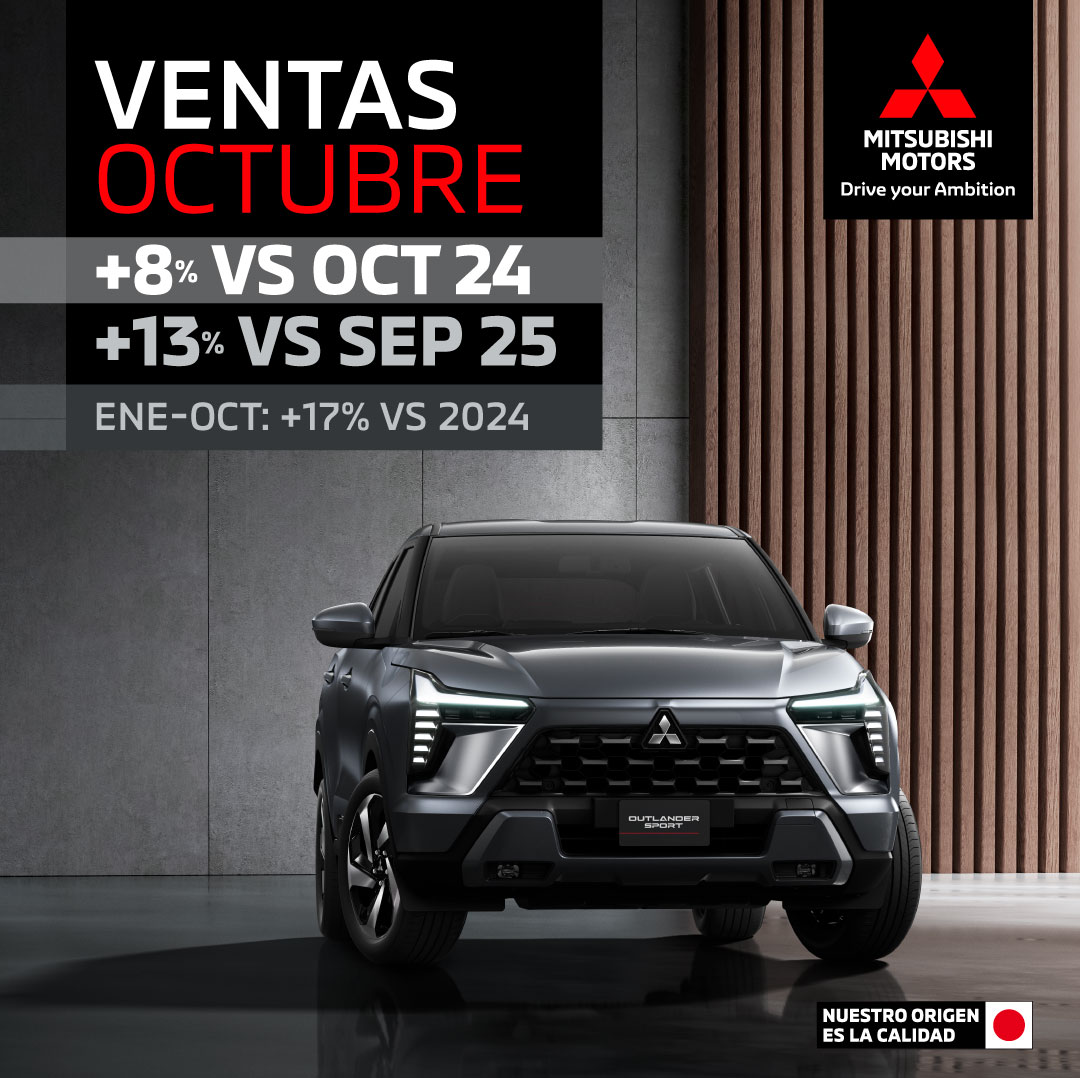 Ciudad de México, 4 de noviembre de 2025.- Para Mitsubishi Motors México, octubre representó un gran mes en ventas, consolidándose con un crecimiento del +8% respecto a octubre del año pasado y +13% c...